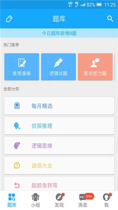 1 拥有海量中文智力题库,每日更新,题目类型多样,包含侦探推理、谜语大全等多种分类